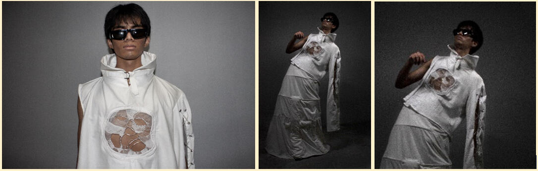 Collection: THE ABNORMALITY was heavily inspired by the birth defects due to agent orange. Venice wanted to raise awareness for it and let everyone know that the effects of agent orange still exist. Her garments included prints that represent gene mutation, spinal defects by gathering, and many other details which define “THE ABNORMALITY".